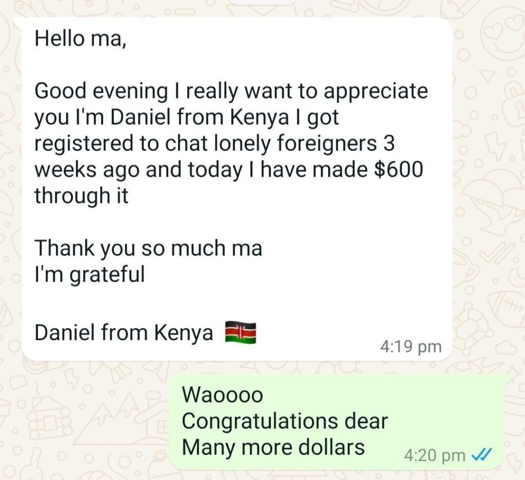 Here’s Daniel, a guy from Kenya that did over $600 in a space of 3 weeks chatting with this lonely foreigners.